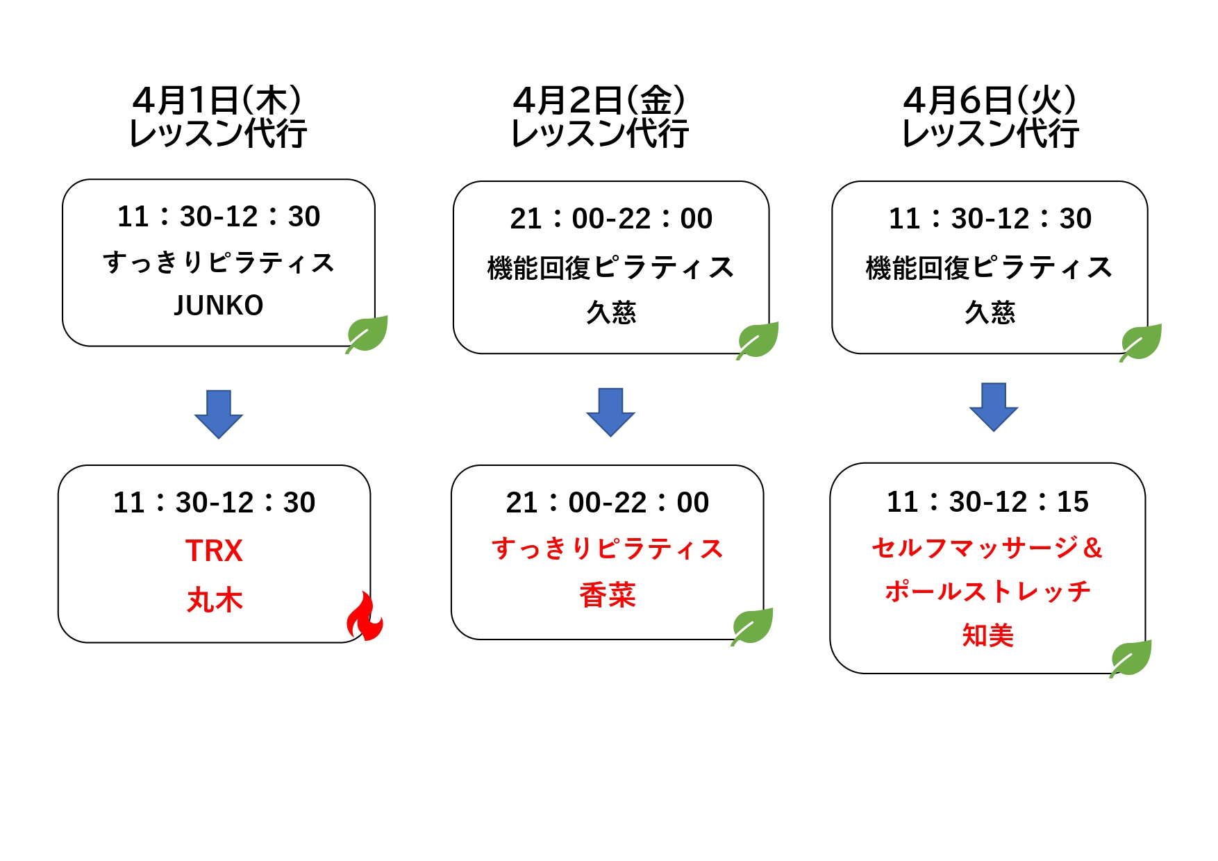 サテライトスタジオレッスン&変更・代行レッスンのお知らせ