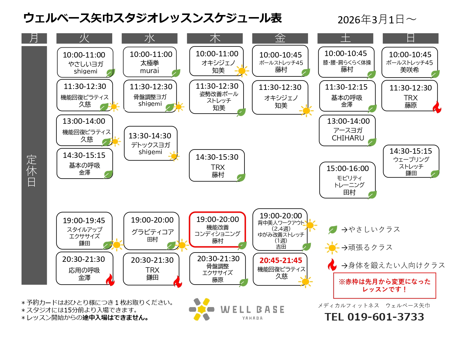 ③ スタジオご利用人数を制限しています。各レッスンの定員数は、スタッフにご確認ください。
