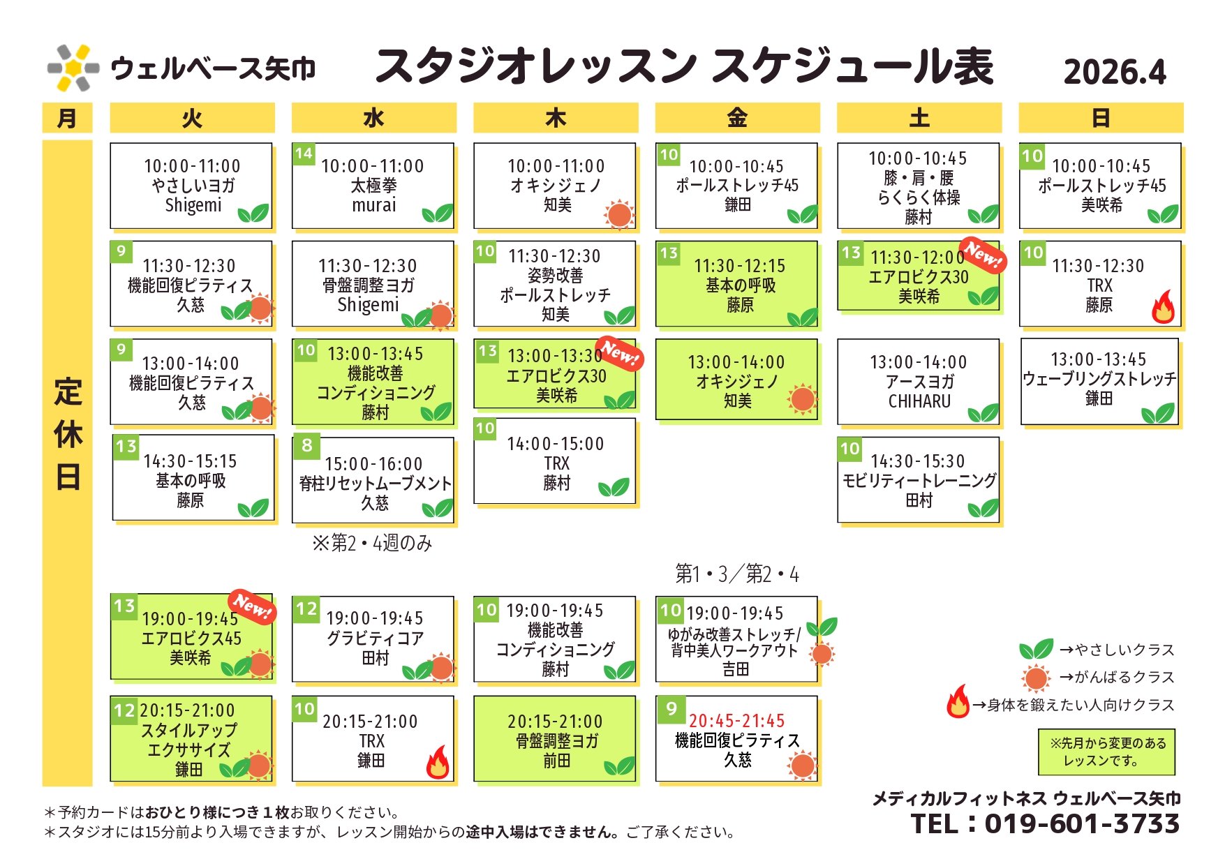 ③ スタジオご利用人数を制限しています。各レッスンの定員数は、スタッフにご確認ください。
