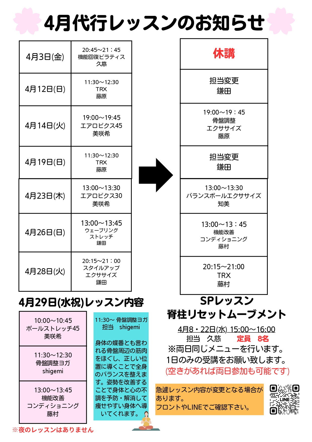 詳しい参加方法は、スタジオレッスンの参加方法 をご確認ください。